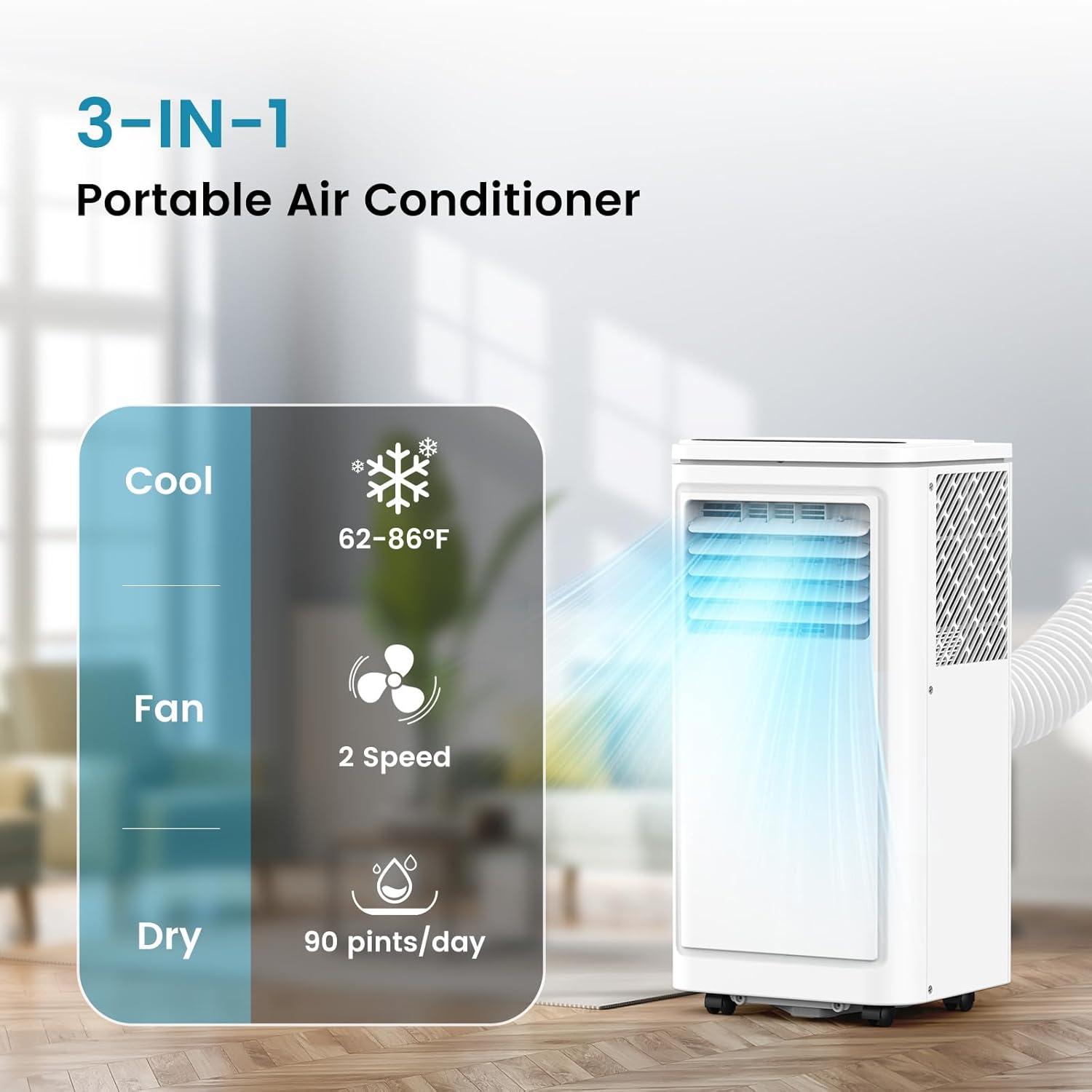 【8000BTU Rapid Cooling】This portable air conditioner, ETL certified, delivers a large volume of cool air to every corner. Equipped with a high-performance motor, it produces strong cooling airflow, quickly providing cooling temperatures ranging from 62-80°F within a range of 350 square feet.