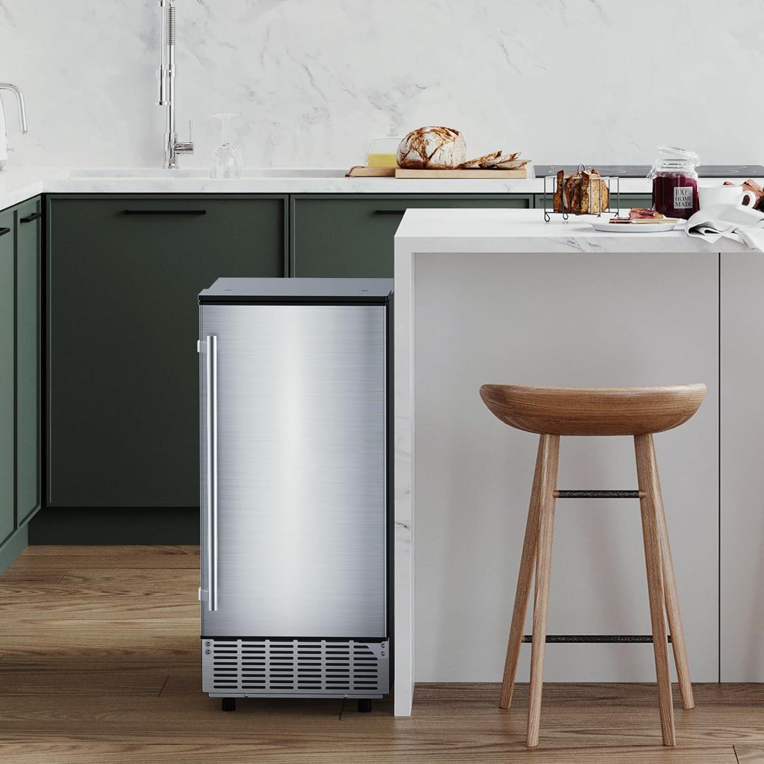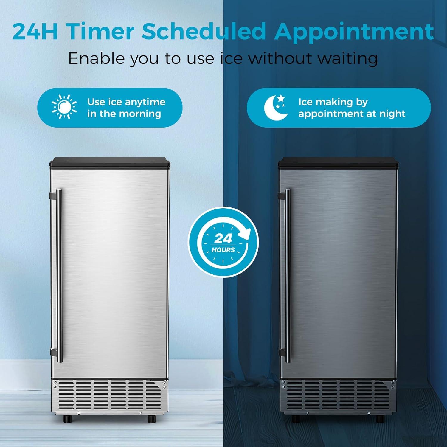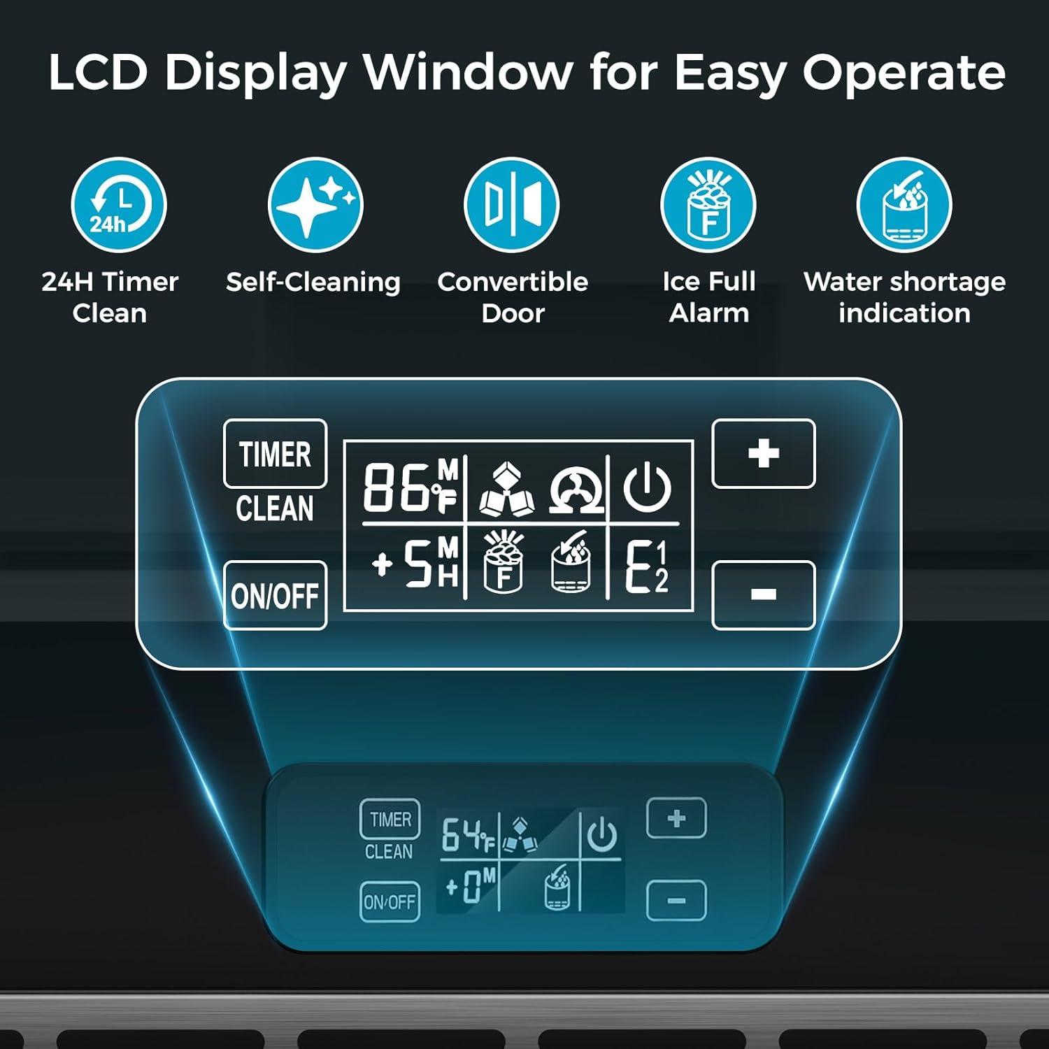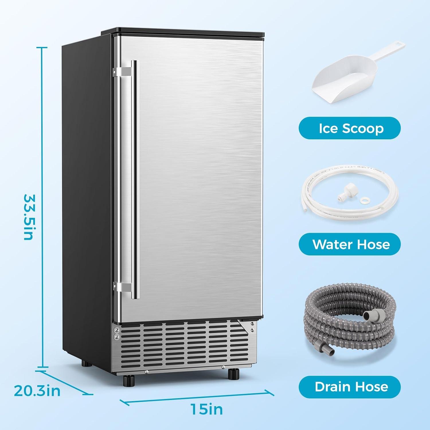 【Compact Design and Reversible Door】The Cowsar ice maker has a built-in design of 15.0 X 20.3 X 33.5 inches, making it ideal for standard-height kitchens or bars. This freestanding ice maker can also be used as a standalone unit. The door of the under-counter ice maker features a stainless steel handle and can be installed on either the left or right door panel, allowing you to choose the opening direction based on your needs.