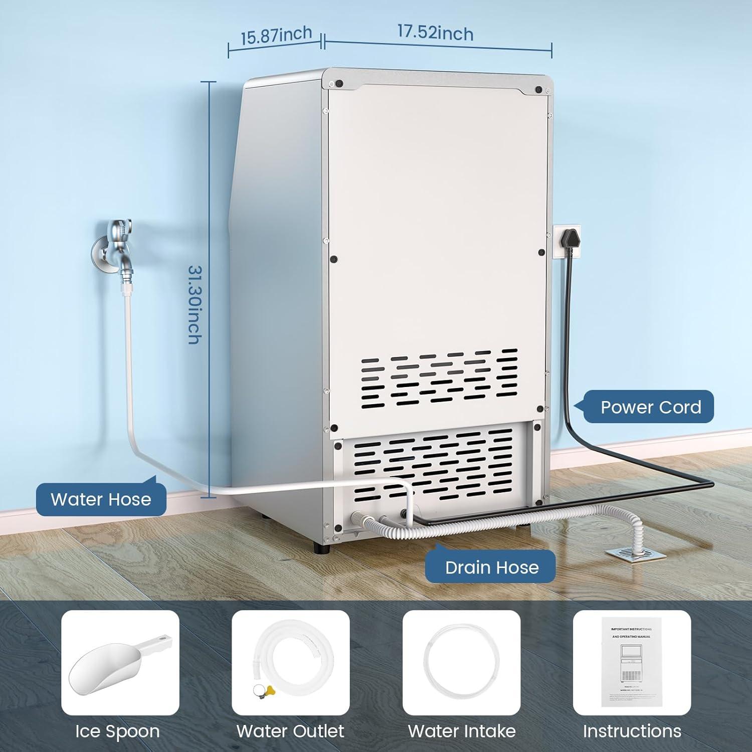 User-Friendly Design: The commercial ice machine features an ice scoop equipped with a hook for convenient storage and access. It also comes with wheels, making it move to the desired location effortlessly. This stylish and compact under-counter ice maker is suitable for various settings, including homes, indoor/outdoor kitchens, as well as restaurants, bars, hotels, grocery stores, and more. You can easily relocate the equipment to meet the needs of different occasions.