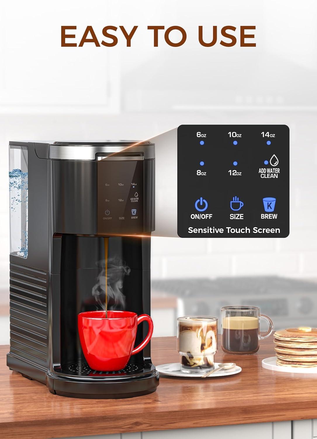 User-Friendly Touchscreen: The intuitive touchscreen interface makes operation simple and smooth, while offering 5 brew size options to customize your coffee experience effortlessly